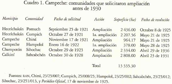 Sea cual sea la respuesta, lo cierto es que hacia la mitad del siglo XX el campo campechano reñía otro aspecto. Al inicio de la reforma en Campeche existían alrededor de 60 centros de población que habían practicado la tenencia comunal o que en apariencia así era. Para este tiempo había ya aproximadamente 130 y mostraban que la práctica de la posesión en común aún era importante en su cultura y que tenían bajo su propiedad una gran superficie de tierras del estado.