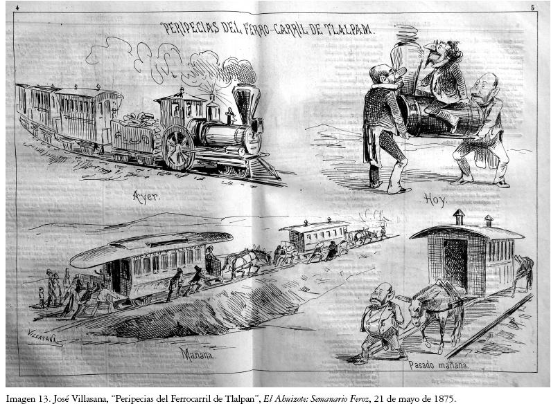 103 Villasana, "Peripecias del Ferro–carril de Tlalpan", El Ahuizote, edición del 21 de mayo de 1875.