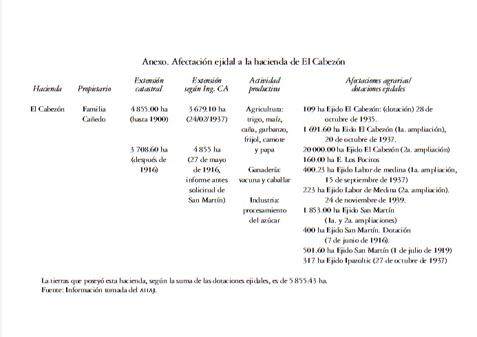 Anexo. Afectación ejidal a la hacienda de El Cabezón