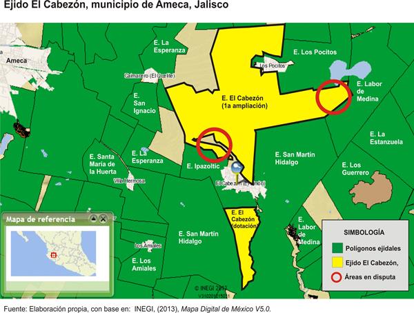 This work explores the formation of the ejidos in the Ameca Valley, Jalisco, particularly the case of the El Cabezón ejido in the past 30 years. It analyzes the circumstances and phenomena that caused the disintegration of the hacienda with the same name, and the difficulties faced by those applying for land in achieving their objective, the right to land. It aims to clarify certain points of regional history relating to the implementation of Land Reform, describe the human actions and thus enable greater understanding of the current situation experienced by the shared land of El Cabezón, in the Municipality of Ameca, Jalisco, and its owners.