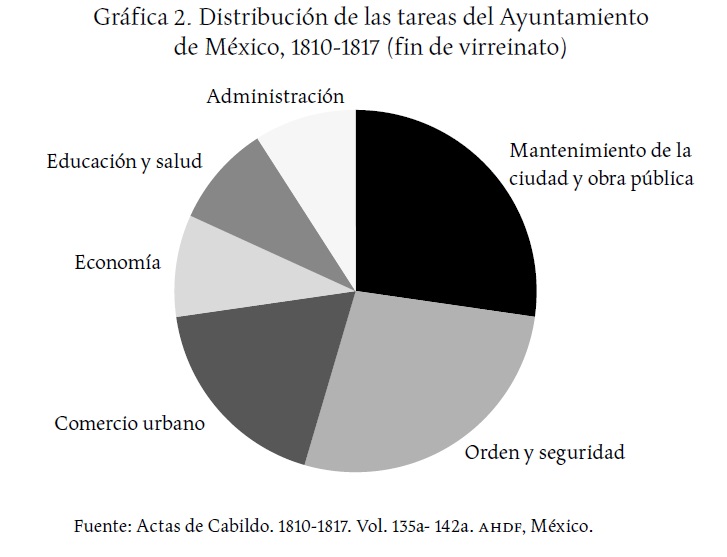 Gráfica 2. Distribución de las tareas del Ayuntamiento de México, 1810-1817 (fin de virreinato)