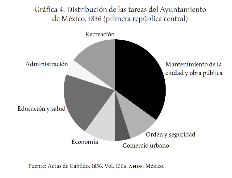 Gráfica 4. Distribución de las tareas del Ayuntamiento de México, 1836 (primera república central)