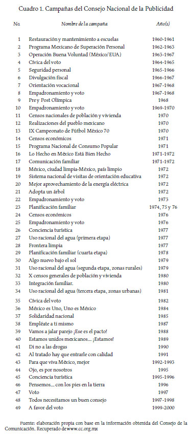 Cuadro 1. Campañas del Consejo Nacional de la Publicidad