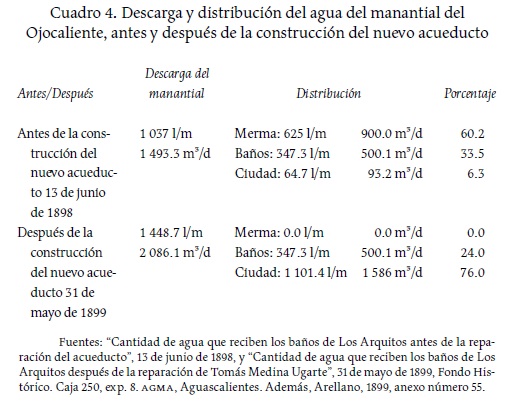 Cuadro 4. Descarga y distribución del agua del manantial del Ojocaliente, antes y después de la construcción del nuevo acueducto