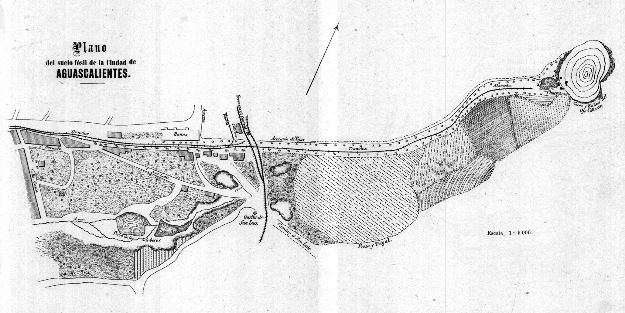 Por otra parte, esta reforma respondía al crecimiento de la ciudad de Aguascalientes, en la que en 1900 fueron censados casi 35 000 habitantes, poco menos del doble de los que tenía a mediados del xix (Estadísticas, 2010, cuadro 1.51). La introducción del ferrocarril en 1884 animó a la familia Guggenheim a construir en las inmediaciones de la ciudad la Gran Fundición Central Mexicana, una gigantesca planta procesadora de metales industriales que en 1895, cuando se inauguró, empleaba a más de 1 000 obreros. En septiembre de 1897, mientras se llevaba a cabo la reforma del sistema de abasto de agua, el gobernador Arellano firmó con la compañía del Ferrocarril Central Mexicano un contrato tendente a la construcción en las orillas de la ciudad de sus talleres generales, para lo cual se adquirió, con cargo al erario público, un gran terreno a la vera de la acequia de Ojocaliente, entre el manantial y la vía del tren (Arellano, 1899, p. xxxi). Estos eventos detonaron una verdadera revolución industrial a escala local y alteraron por completo la antigua y apacible fisonomía de la ciudad.