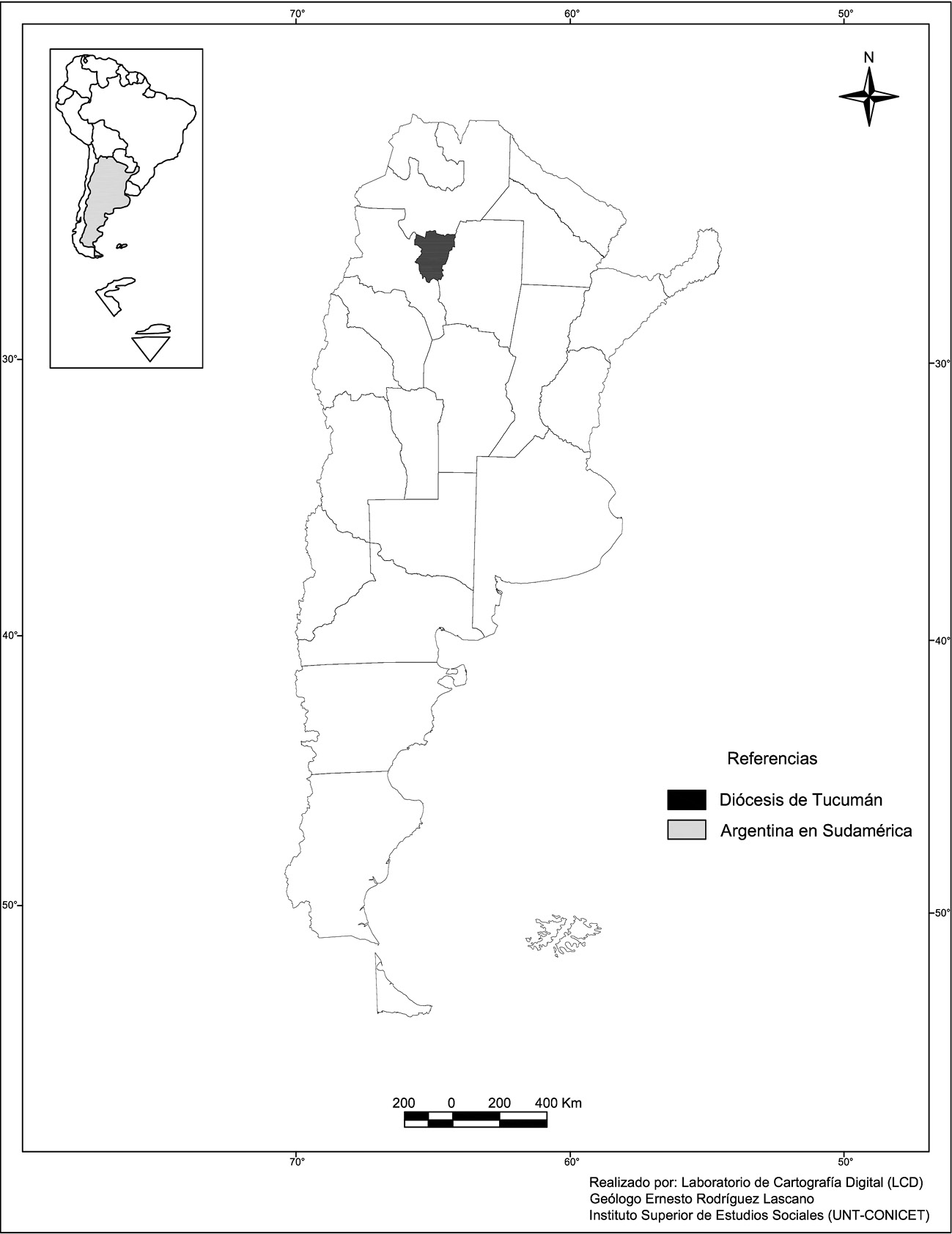 Mapa 1. Ubicación de la diócesis de Tucumán en Argentina (división política)