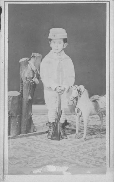 Los juguetes, material de primera importancia en la concepción de la educación del siglo XIX, se dividían por género y debían servir a la socialización y al desarrollo de los niños, enseñándoles, entre otros aspectos, el papel que le correspondería en su vida adulta. De esta forma, los juguetes destinados a los niños (soldados de plomo, armas a escala reducida, trenes, barcos…) debían acostumbrarlos a su papel de guerrero o de empresario/ingeniero. Esta vertiente se puede percibir en el retrato de Alfredo Santa Cruz de 1899 (véase imagen 1), donde el niño se presenta vestido con uniforme, al lado de un caballo de madera y con un fusil miniatura en las manos. A su vez, hacia 1895, Carmen Morla Lynch recuerda a su hermano Carlos “vestido de oficial azul, un casco de plumas blancas y una espada dorada que le colgaba del cinturón” (Díaz, 2016, p. 260). De esta forma, se construía la asociación hombre/guerrero, que más tarde se podía traducir en una asociación ciudadano/soldado. Cabe recalcar que la diferencia entre los géneros a través de la vestimenta, diaria o de disfraz, no operaba en los primeros años ya que tanto niños como niñas usaban vestidos en su primera infancia. La transición operaba entre los cinco y los siete años, es decir, concomitante con el ingreso al sistema escolar formal, cuando los niños empezaban a usar pantalones cortos. La ocasión era solemne, ya que simbolizaba el pasaje de una educación casi exclusivamente femenina a un cuidado más dirigido por los hombres, por lo que se podía inmortalizar en un retrato fotográfico en estudio, como fue el caso para Maximiano Errázuriz Valdés que en 1895 fue fotografiado con su flamante traje marinero.