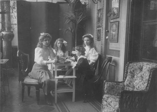 La nursery podía ser un espacio informal: por ejemplo, Flora Yañez y su hermano se habían apoderado de una pieza que no había sido ocupada por falta de muebles, y en la cual podían dibujar sobre el papel pintado, recibir sus juguetes de Navidad y dejar libre curso a su imaginación, al punto que este espacio constituyó “una existencia irreal” (Yáñez, 1947, pp. 21-22). Pero en la mayoría de las casas de elite, se trataba de un espacio formal, es decir, armado especialmente para los niños. No obstante, cabe recalcar que, si bien los niños podían disponer en él sus juguetes y sus materiales de estudio, rara vez era un espacio donde los pequeños podían expresarse libremente: al contrario, estaba concebido como un lugar donde el niño aprendía a comportarse con los adultos para cuando estuviera en su presencia. En este sentido, era descrito por la revista Familia (1913) como “el pequeño mundo de los niños”, siendo un espacio donde podían jugar pero donde también se les empezaba “a formar el carácter con que [tenían] que luchar en la vida”.[9] De esta idea deriva, por ejemplo, la presencia de una sirvienta que vigilaba constantemente el comportamiento de Martina Barros y de su hermano, o la contratación de institutrices. A su vez, presuponía una preocupación por el entorno material, en primer lugar con la presencia de libros, por lo que el espacio infantil se perfila como un espacio de lectura, probablemente individual. Entre estos libros, se contaba con cuentos de hada, cuyos personajes podían incluso servir de decoración en las paredes o los cojines. De esta forma, se forma un lazo con el imaginario, incluso con lo mágico, pero también con lo pedagógico y lo moral, e incluso con una cuota de terrorífico, ya que de las situaciones descritas en los cuentos los niños van aprendiendo según su edad (Bettelheim, 1976). Cabe, sin embargo, recalcar que este lazo con la infancia mágica, en palabras de Eche Becchi, responde a “una serie de concepciones antropológicas y societarias no siempre manifiestas”, que conforman una representación del niño a la vez apartada e inserta en su contexto de producción (Becchi, 1998, p. 30). Para concluir, el artículo de 1913 recomendaba el uso de “colores suaves y bien armonizados” que “descansen los sentidos”, evitando de esta forma la sobreexcitación de los pequeños. Cuando los niños crecían y entraban paulatinamente en el mundo adulto, esta sala de juego se transformaba en salón, donde los jóvenes recibían sus amigos o podían dedicarse a actividades más tranquilas, como la costura, la lectura o los juegos de mesa.