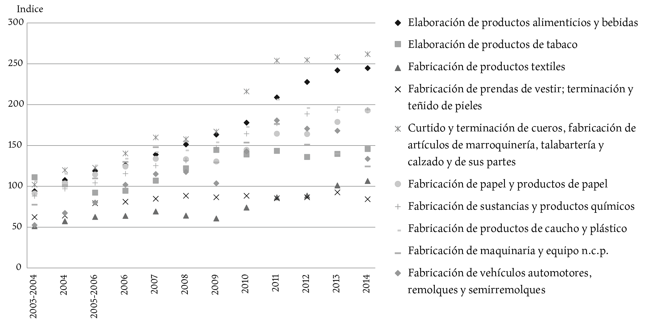 las cadenas productivas de la industria alimentaria, con fuerte peso en la