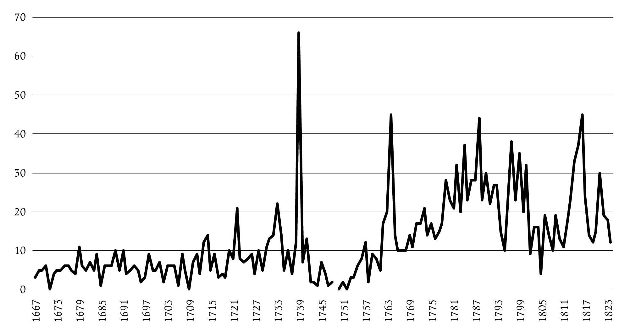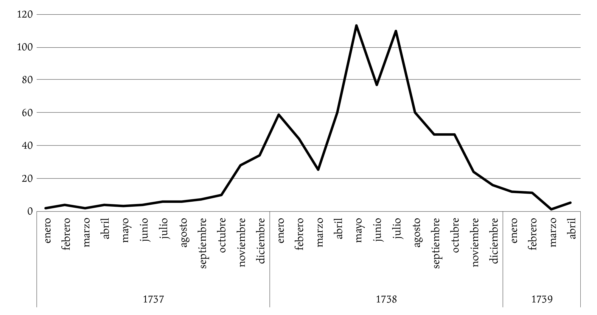 10 De 1734 a 1736 murieron 115 adultos, sólo cuatro de ellos eran esposos, es