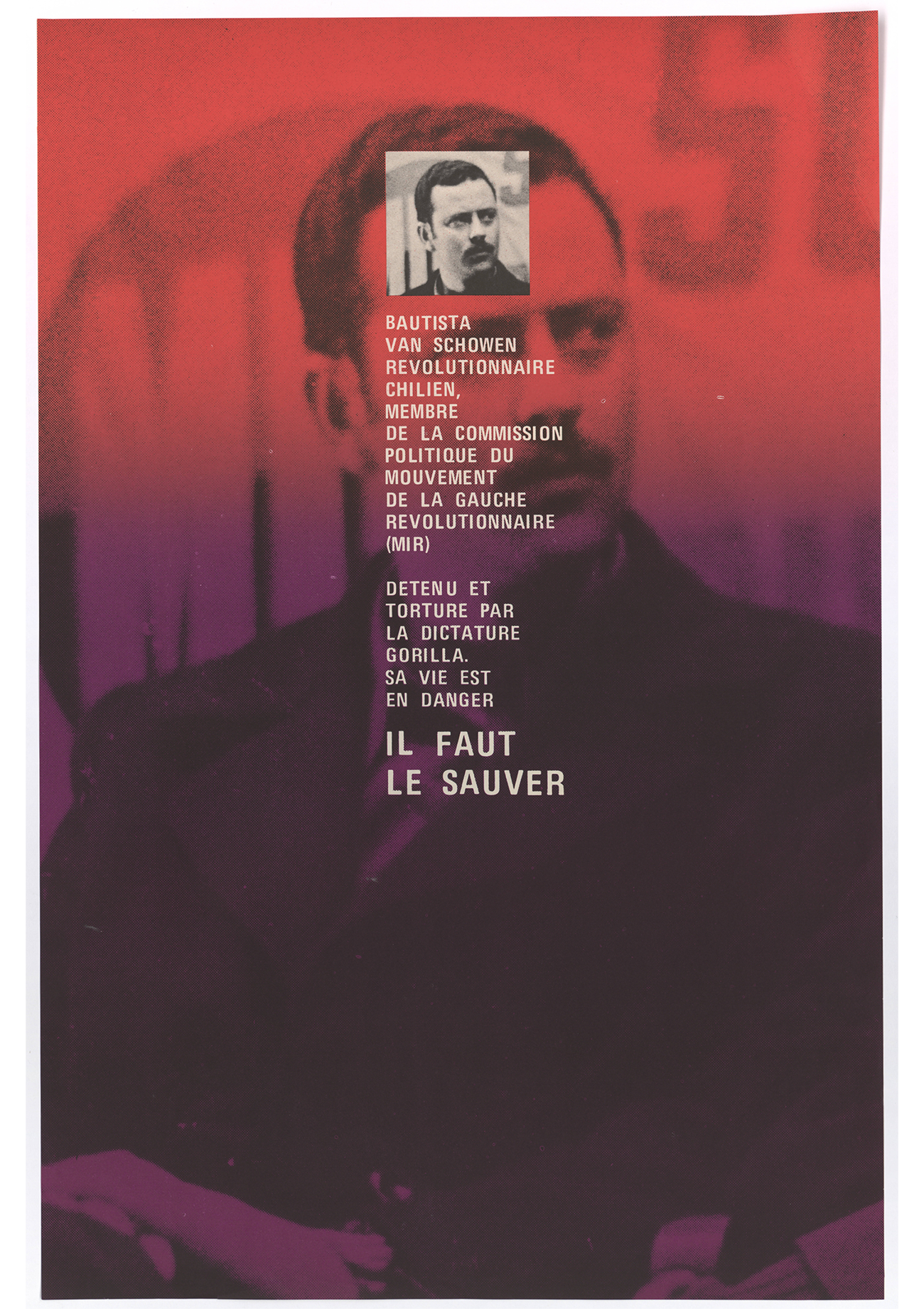34 Se pueden mencionar varios ejemplos, como el cartel “Halte à la répression. Exigeons la libération des prisonniers politiques en Amérique Latine”, firmado por el Parti Socialiste Chilien. bpmip, AFF057.