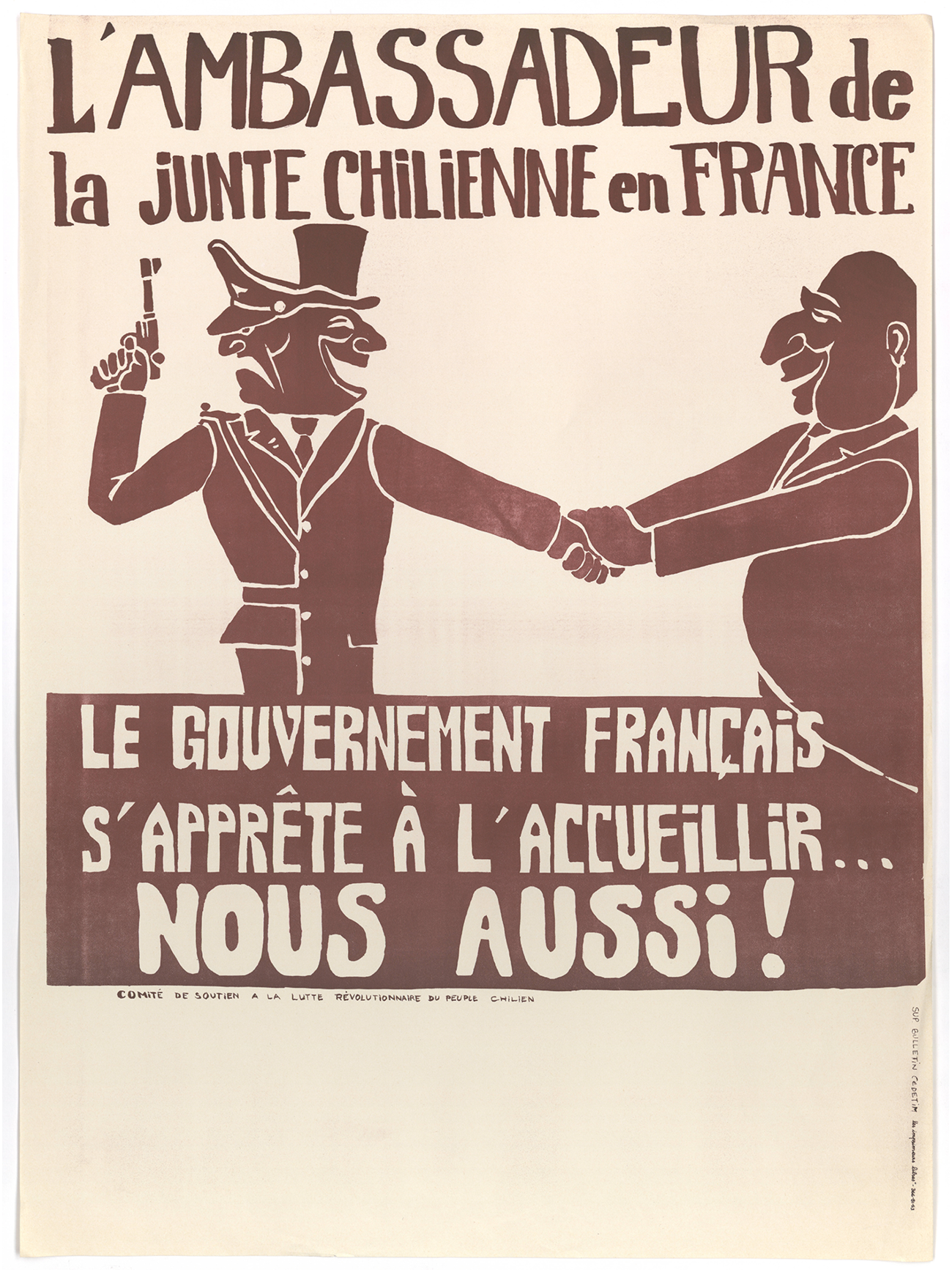 42 Cartel “L’ambassadeur de la Junte chilienne en France. Le gouvernement français s’apprête à l’accueillir”, firmado por el cslrpc. bpmip, AFF074.