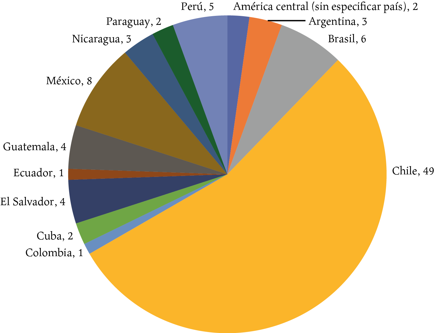 Gráfica 1. Solidaridad francesa con países latinoamericanos. Número de carteles por país