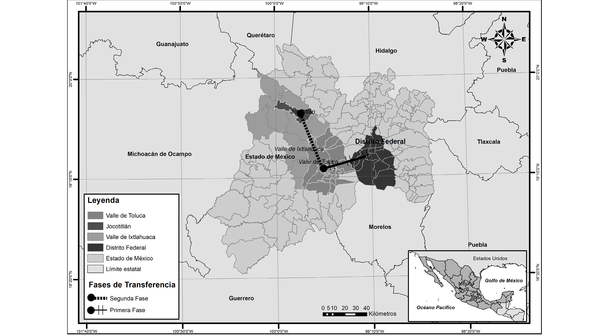 Mapa 2. Valles de Toluca e Ixtlahuaca y las fases de transferencia de agua al df