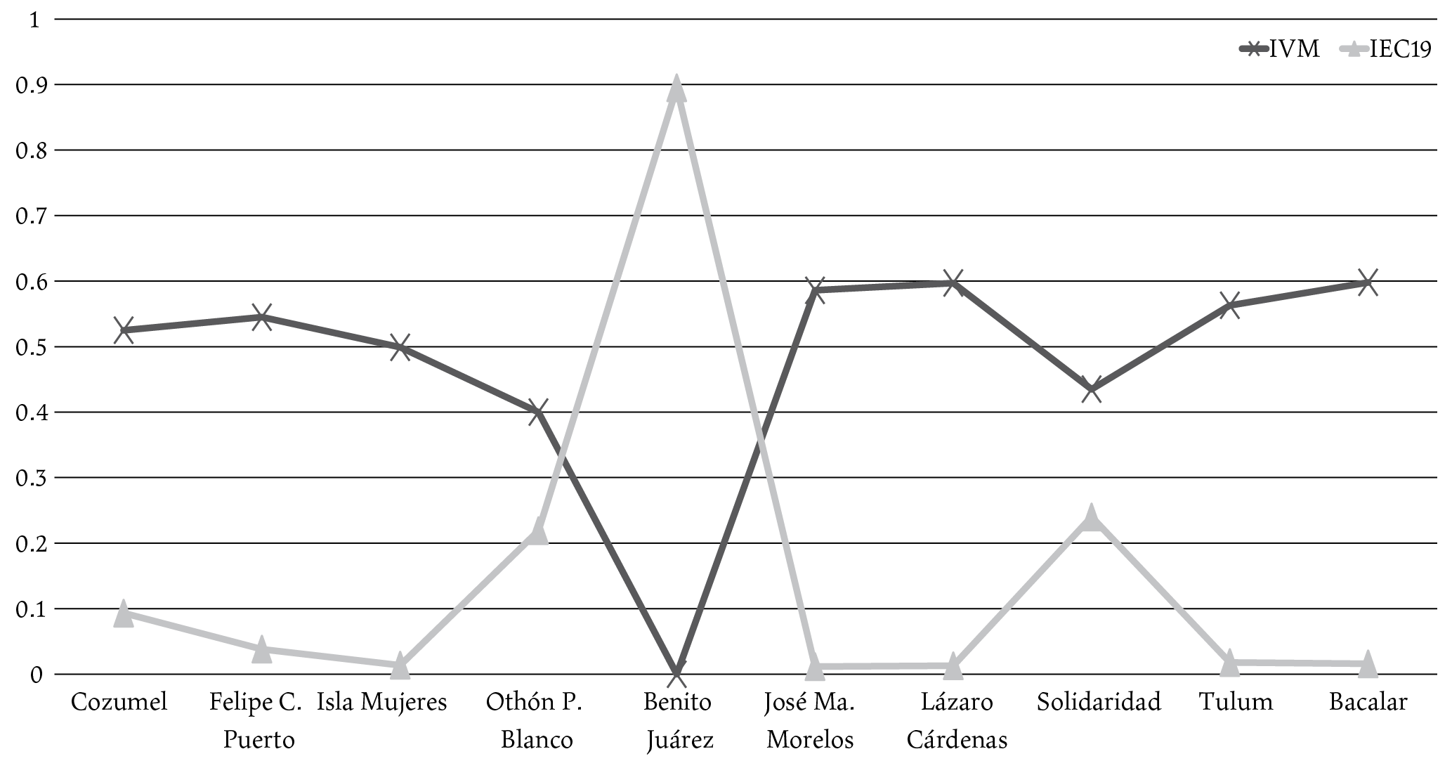 iec19: Índice de efectos Covid-19 ivm: Índice de vulnerabilidad municipal |